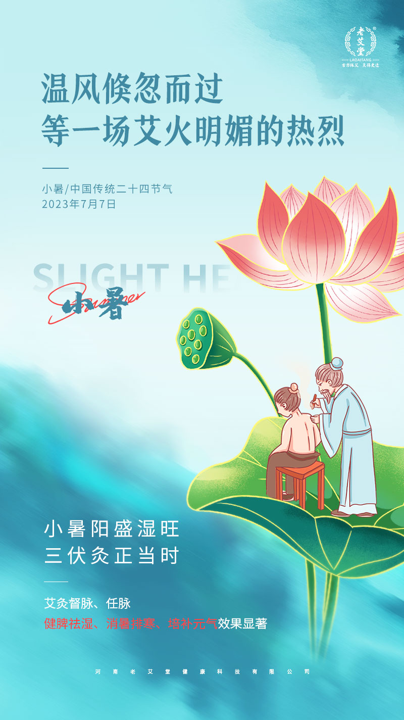 小暑是進(jìn)入長(zhǎng)夏的第一個(gè)節(jié)氣。長(zhǎng)夏在五臟屬脾,其最大的特點(diǎn)是濕氣太重,而脾喜燥惡濕,一旦受“濕邪”侵襲容易出現(xiàn)惡心嘔吐、大便稀溏等脾胃不和的問(wèn)題,因此,小暑時(shí)節(jié),應(yīng)注意調(diào)理脾胃。夏季推薦大家多做古方臍灸或八象混元灸,調(diào)和臟腑,補(bǔ)脾和胃。